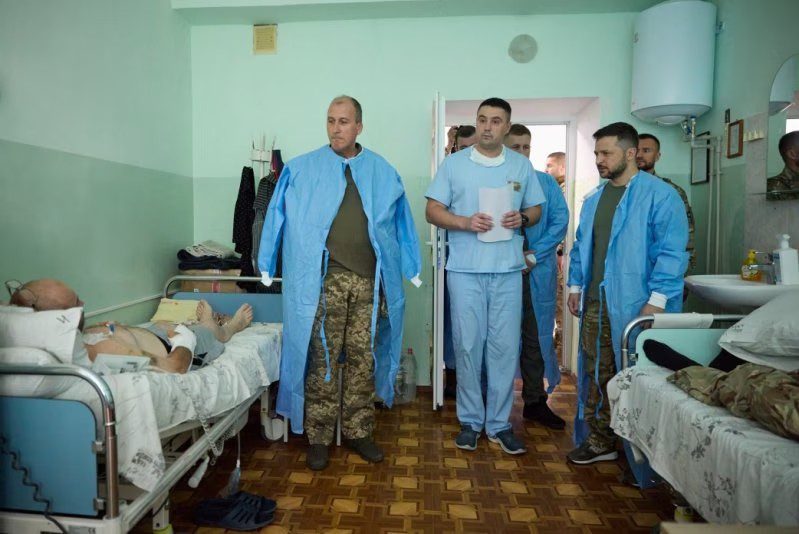 Крім цього Володимиром Зеленським було здійснено візит до однієї з одеських лікарень, де в травматологічному відділенні проходили лікування поранені військові.