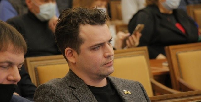 Так, 15-того лютого під час сесійного засідання міськради депутат вирішив зібрати українські прапори, які були розставлені по столах. Після цього він їх відсунув убік.