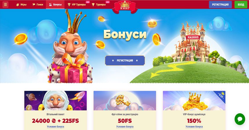 Сайт казино Кінг представляє до уваги користувачів захоплюючий асортимент автоматів у компанії з живими іграми. Казино досягло успіху в українському гемблінгу, обігнавши всіх чинних конкурентів. У порядності та чесності ігрового клубу не дають сумніву відгуки його клієнтів, а офіційна діяльність ведеться на підставі ліцензії Curacao. Виграші в казино забезпечують слоти з 98% рівнем RTP, на рахунку регулярно з’являються бонуси, також казино запускає низку вигідних заходів. Акаунти геймерів зберігаються на сервері казино, захищеному від будь-яких атак та зломів. Двосторонній зв’язок із ігровим клубом забезпечує сапорт. Не зупиняється казино на досягнутому регулярно поповнюючи колекцію слотів новими іграми.